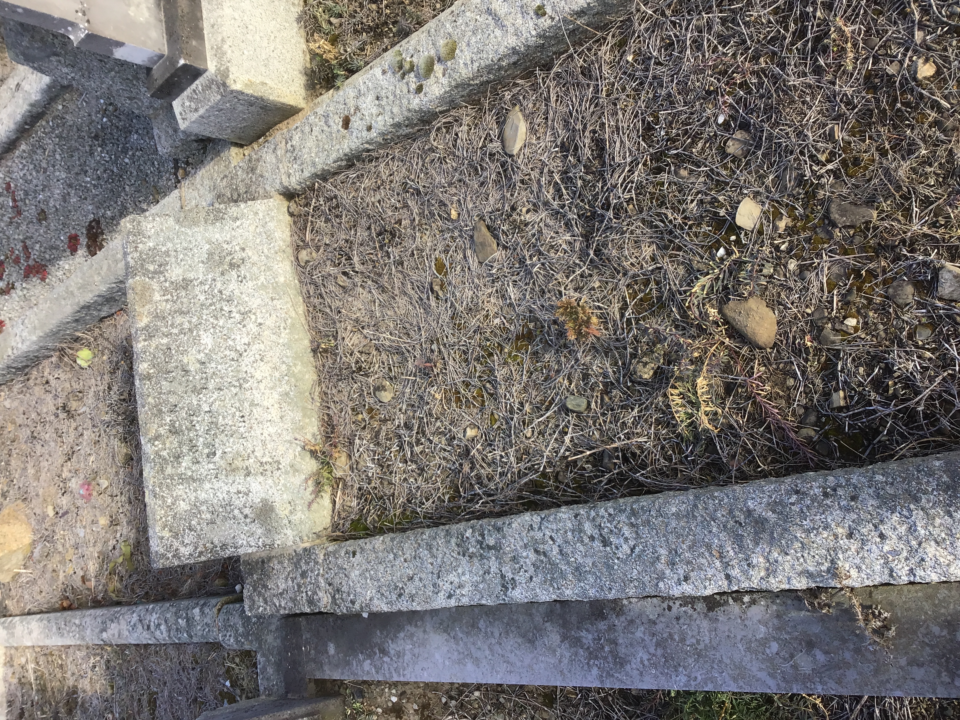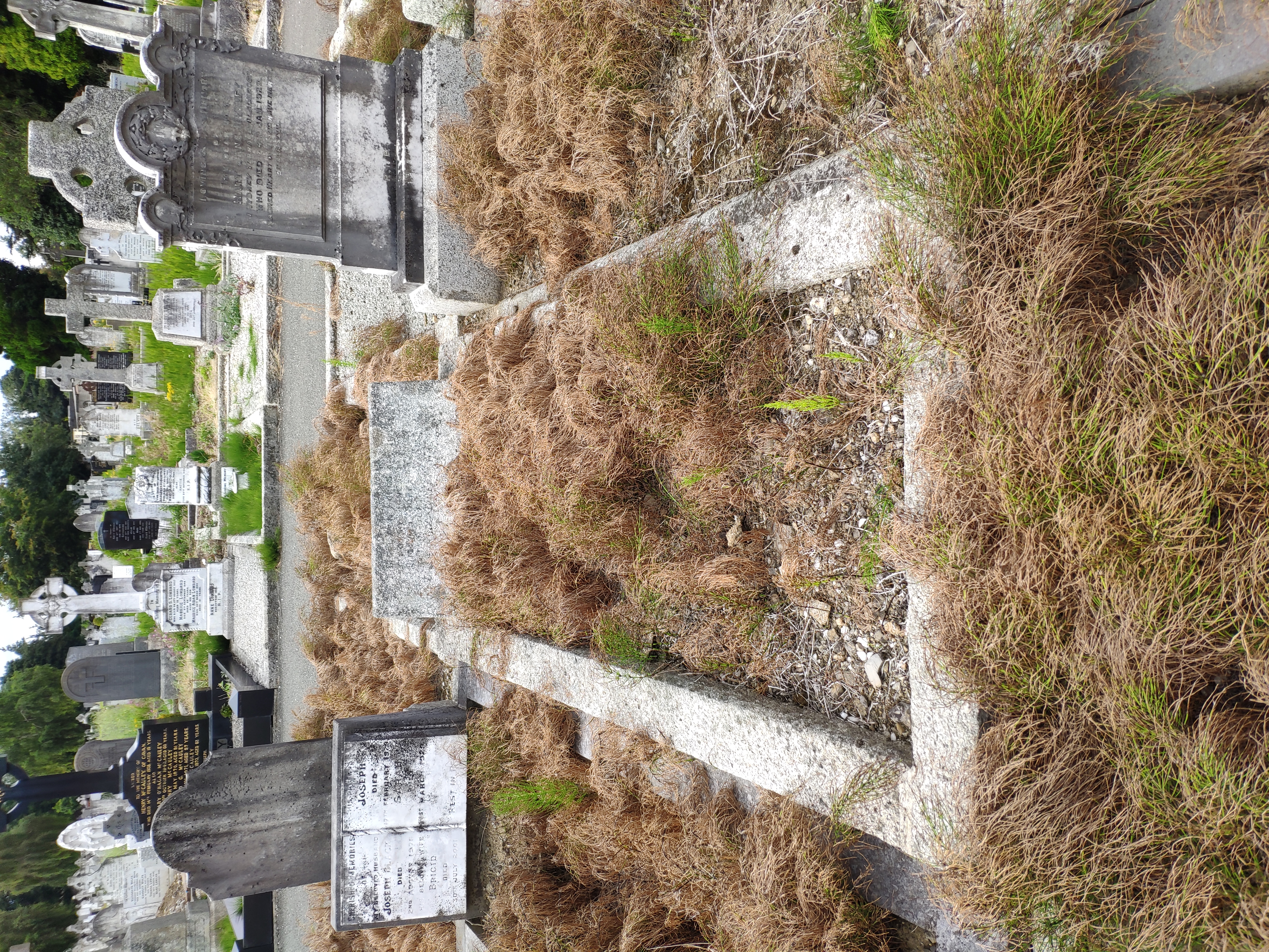 In the last block before the path ends in a T junction, the grave is on LHS.