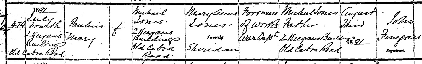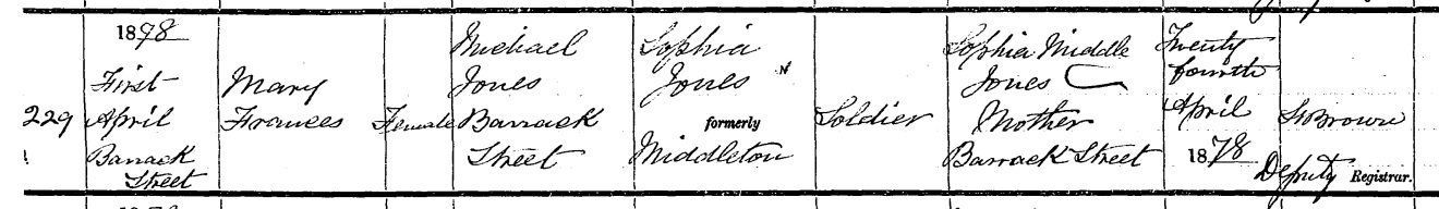 At dau's birth and bapt 1878 they are living Barrack St, Waterford city.