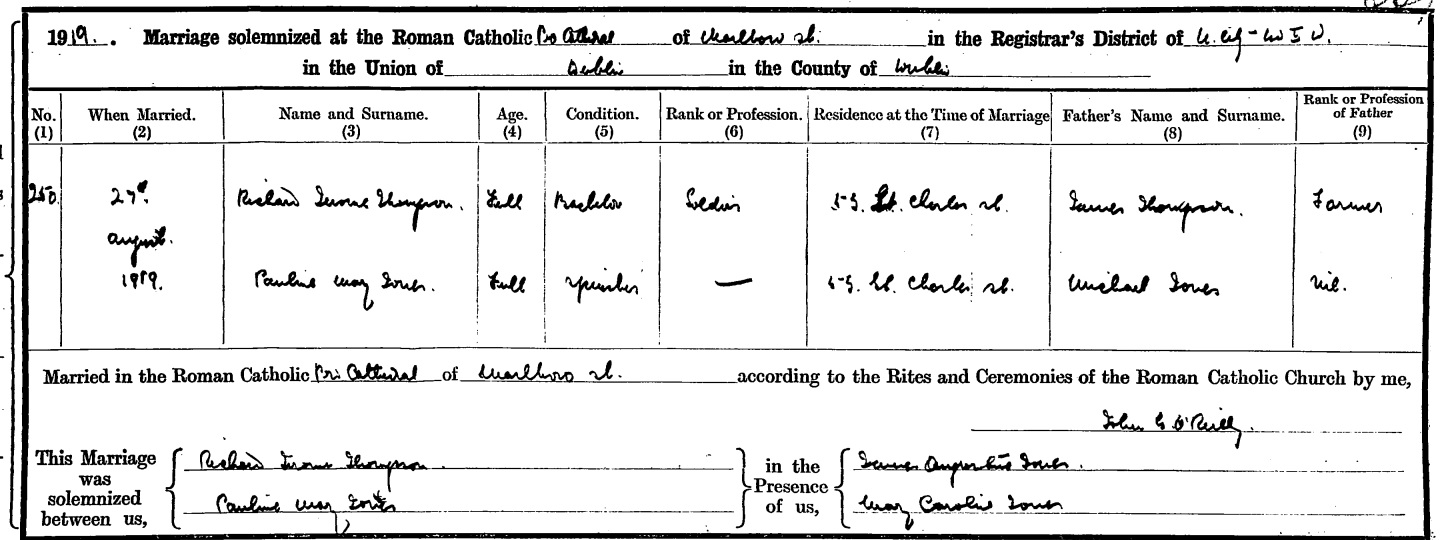 Mar cert 1919 is wrong to say she is living 55 Great Charles Street.