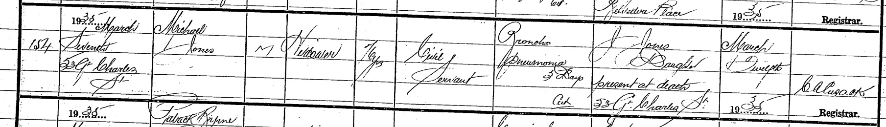 Michael is living 53 Great Charles Street at dau's death 1932.