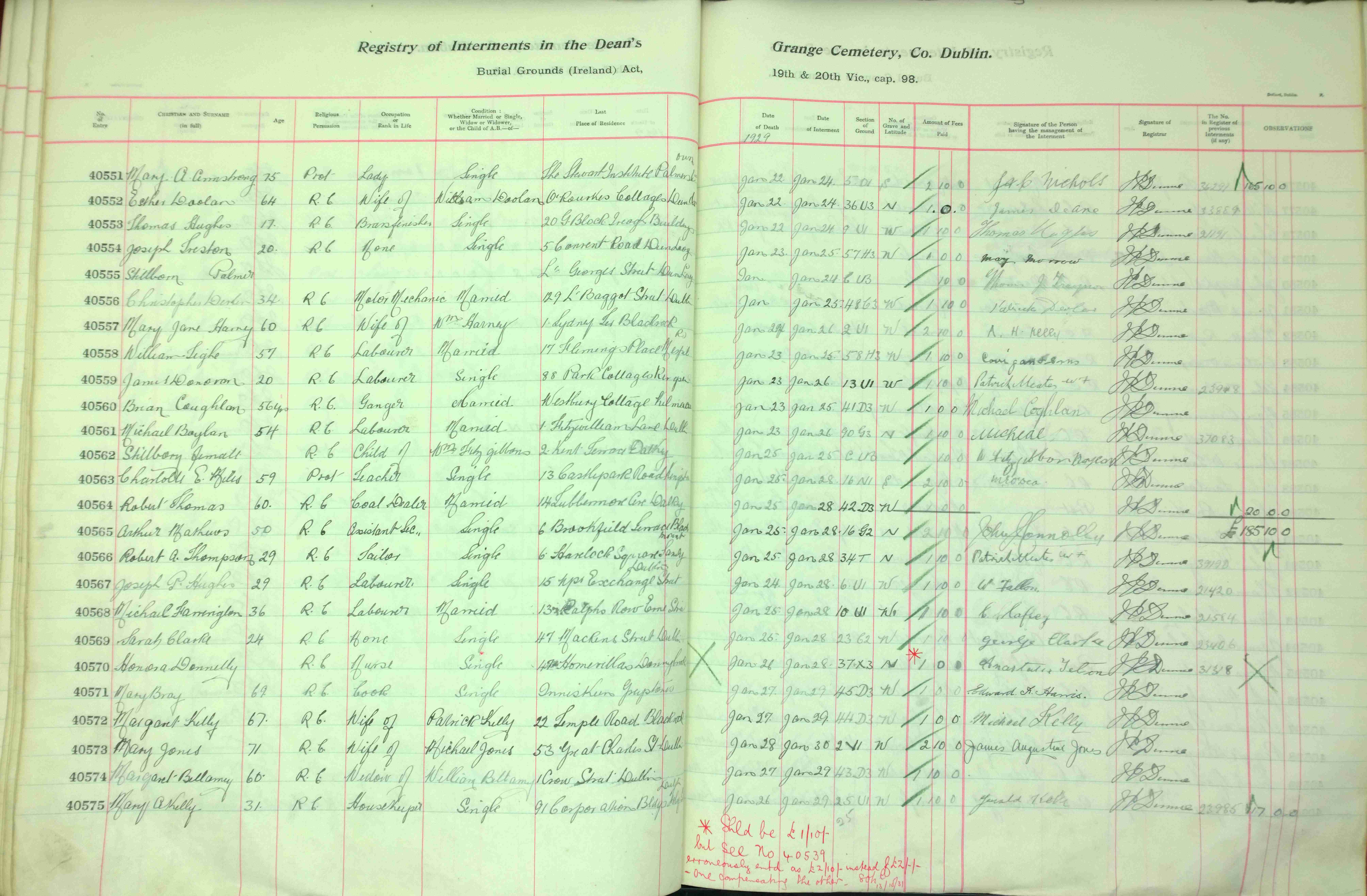 She was bur 30 Jan 1929 in Dean's Grange Cemetery, Dublin.
