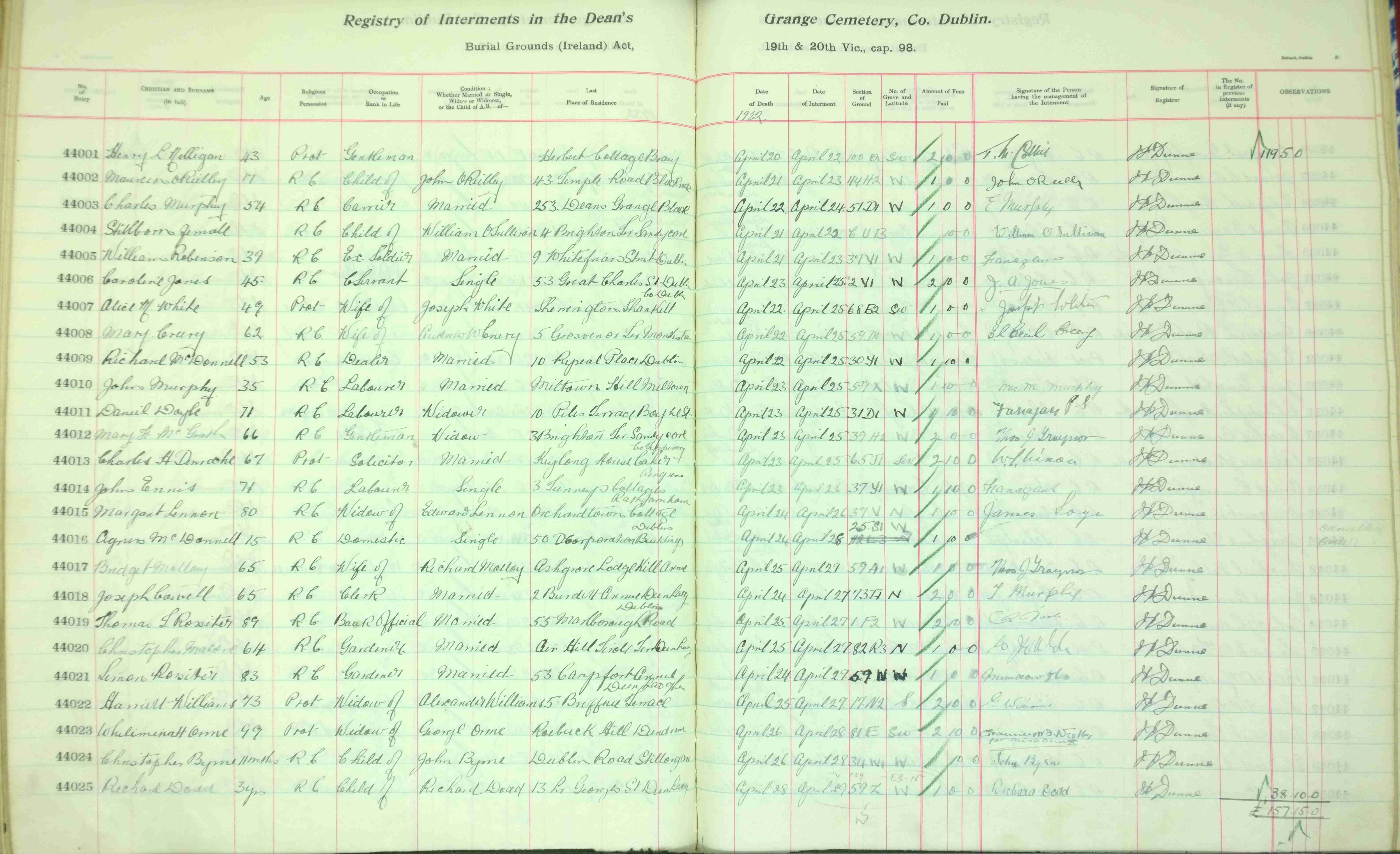 He was bur 24 Feb 1948 in Dean's Grange Cemetery, Dublin.