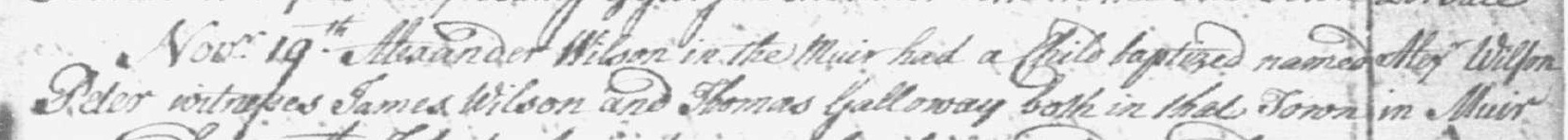 This is confirmed by George Wilson of Archballoch witnessing the baptism of Alexander's son in 1768.
