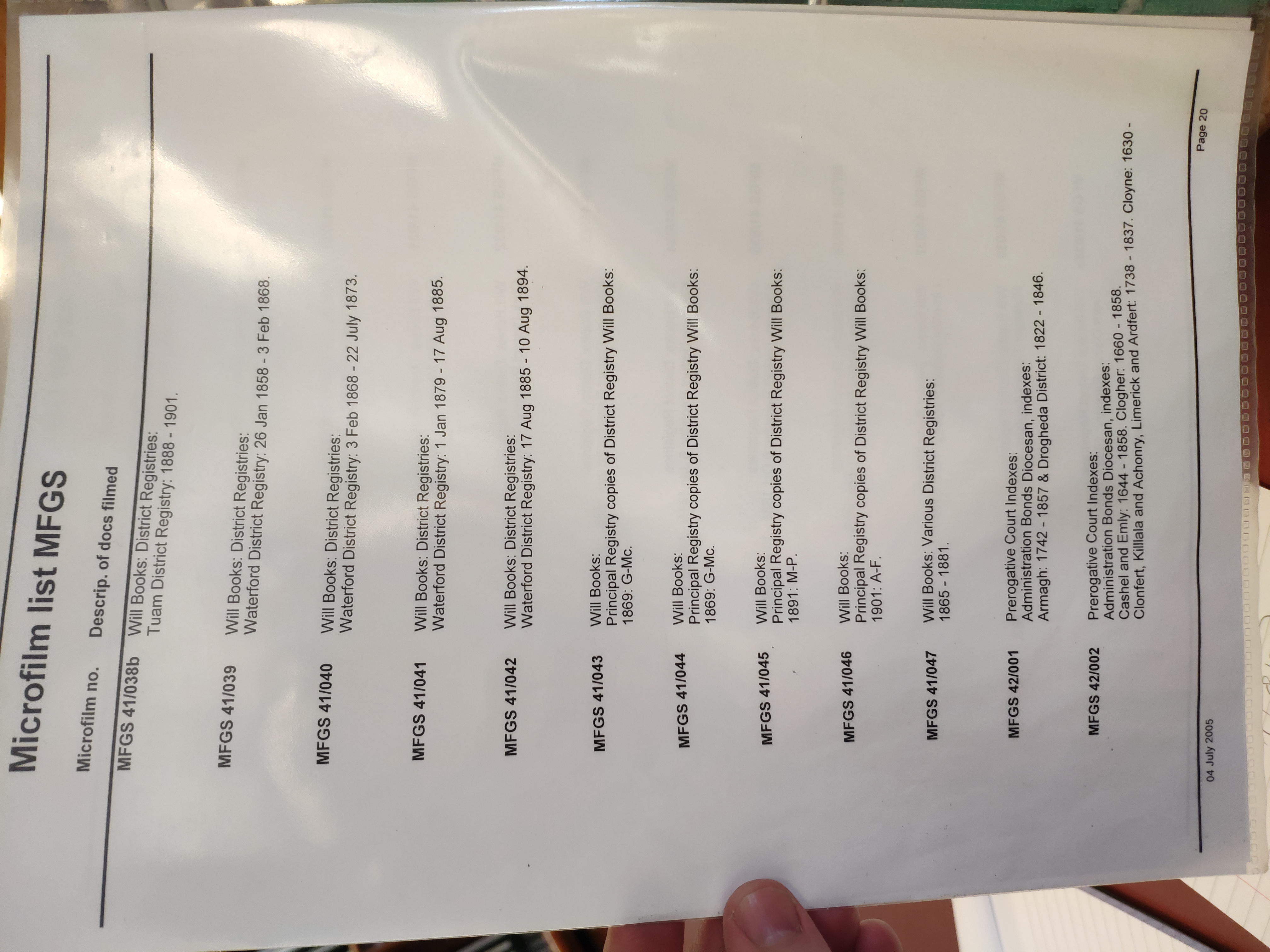 - Index to the Prerogative Wills of Ireland.